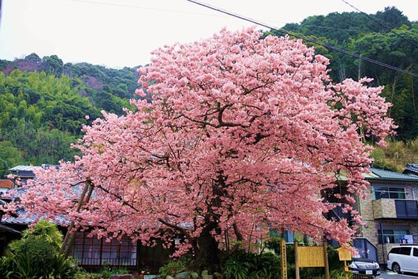 片,頂略尖,另常有萼瓣1個;花梗長約0.5cm,有毛;花2~3朵一束,稀1朵;花謝后花瓣脫落,但花絲還能宿存幾天,遠望之如紅云一片。葉片有毛。易結實。‘日本早櫻’有同一品種同一地點花期不一的現象,一般相差1~2天。