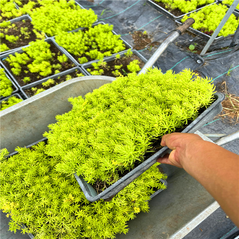 供應金葉佛甲草方盆苗,托盤苗,金葉佛甲草的葉片顏色為金黃色,高度在10-20公分左右,繁殖速度非常快,可以說是落地生根,斷掉的莖葉到了地上就能夠生根。佛甲草多少錢一平方?佛甲草按40*40托盤來購買,一個平方需要6個托盤,一個托盤按照10元計算,是60-70元左右,也有佛甲草是按斤或者按株賣的,不過也是可以按平米賣的,大概一平米的佛甲草價格大約60~70元左右。買金葉佛甲草,還是找專業供應商,買的放心。