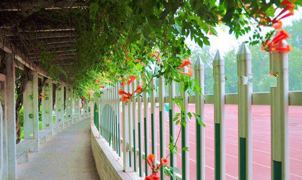 在用鋼構(gòu)件制作成的圓柱周邊,種上幾株凌霄,加強(qiáng)水肥管理,三、兩年就可爬滿圓柱,花開時節(jié),滿柱紅花,給人以賞心悅目之感。