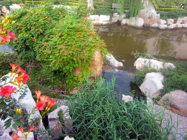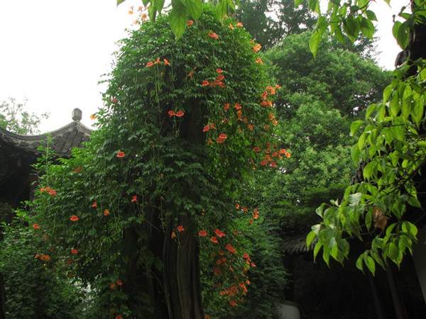 將凌霄種植于假山的縫隙處,或者再適當(dāng)控制其株型,使其驚艷而不喧賓奪主,花開之時,繁花艷彩,更覺動人。