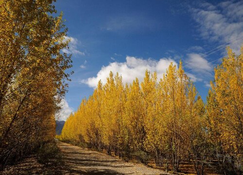 白楊樹的葉子為卵圓形,葉片的先端較短,葉子的形狀就像是一個桃子,也像一個心形,更像是一把小扇子。白楊樹的葉片顏色隨著季節(jié)變化而變化,在初秋時期還是綠色的,而到了秋末冬初落葉前,它的葉片就變成黃色的,風(fēng)一吹整個樹上的葉片就會漫天起舞。
